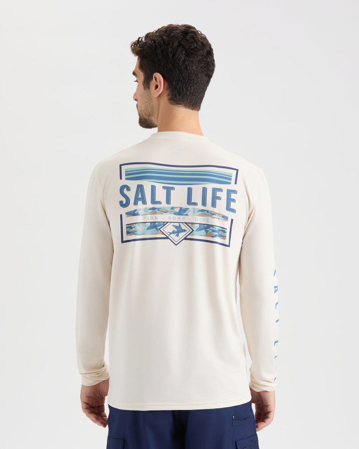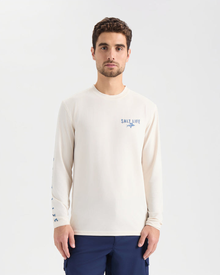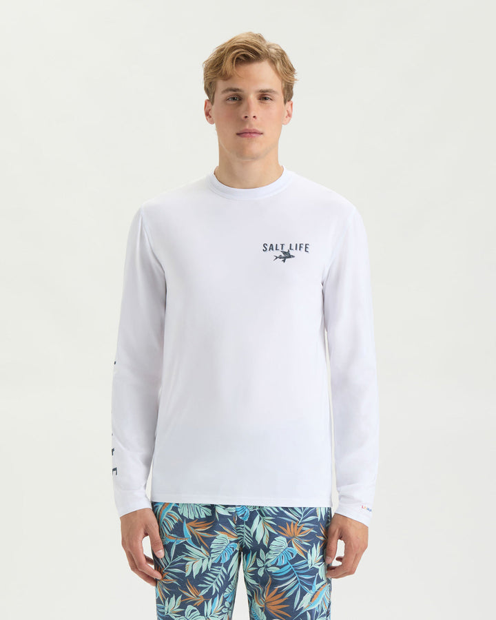 Rise above the rest in the Salt Life Sky Bound performance long sleeve. Crafted from ultra-light UVapor fabric, it offers UV 50 sun protection, quick-dry, moisture-wicking, and antimicrobial features to keep you comfortable and protected. Featuring vibrant sublimation prints on the front, back, and sleeves, this tee combines high-performance technology with standout coastal style.