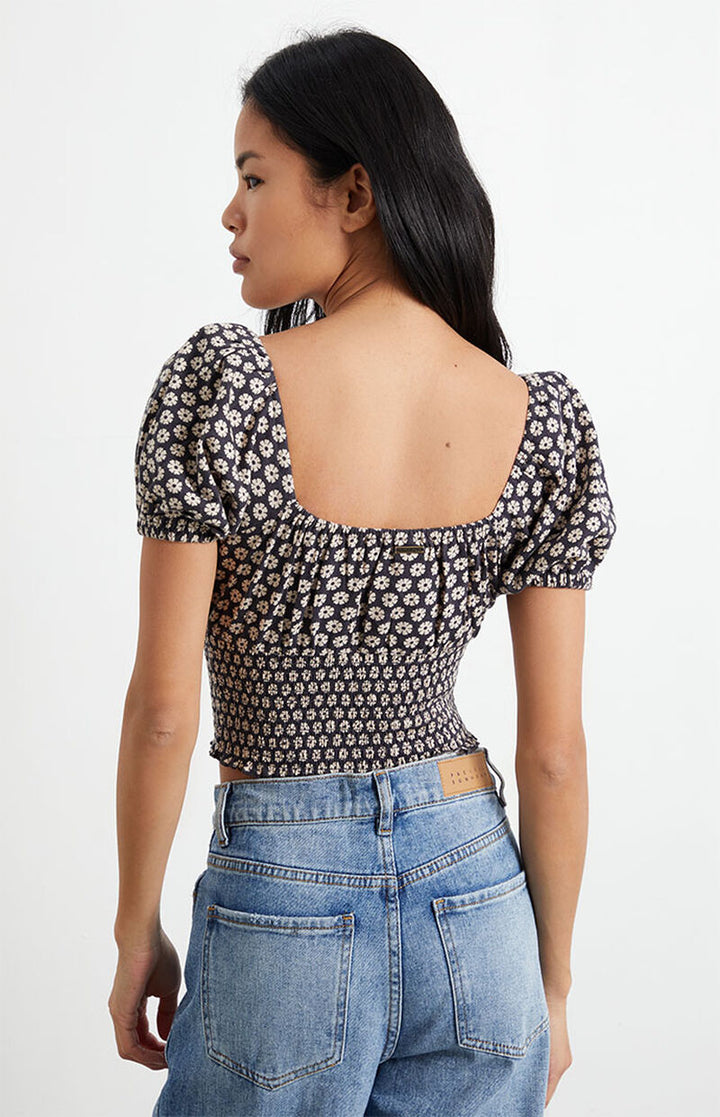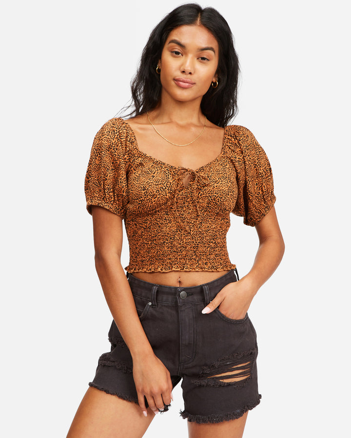 When the sun goes down, this knit top comes out to play. Our favorite kind of summer romance, the Sweet Sunset knit top keeps it fun and easy-going with a sweetheart neckline and smocked waist. The cotton jersey fabric is fitted to hug you like a glove. And that dreamy print? That's what will have you reaching for this elevated essential again and again.